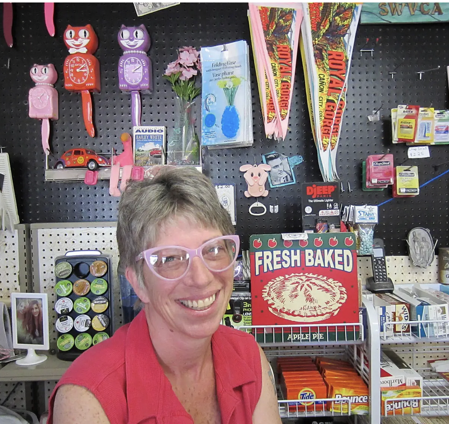 Sylvia Davids smiles from behind the campstore counter, framed by Kit-Kat clocks with swinging tails and swiveling eyes, Chapstick, packets of laundry detergent, a photo of Elvis, and a sign that reads “FRESH COFFEE ANYTIME.” She wears bright pink cat’s eye glasses and a smile. It’s rare to find someone so much in her element, living the dream.